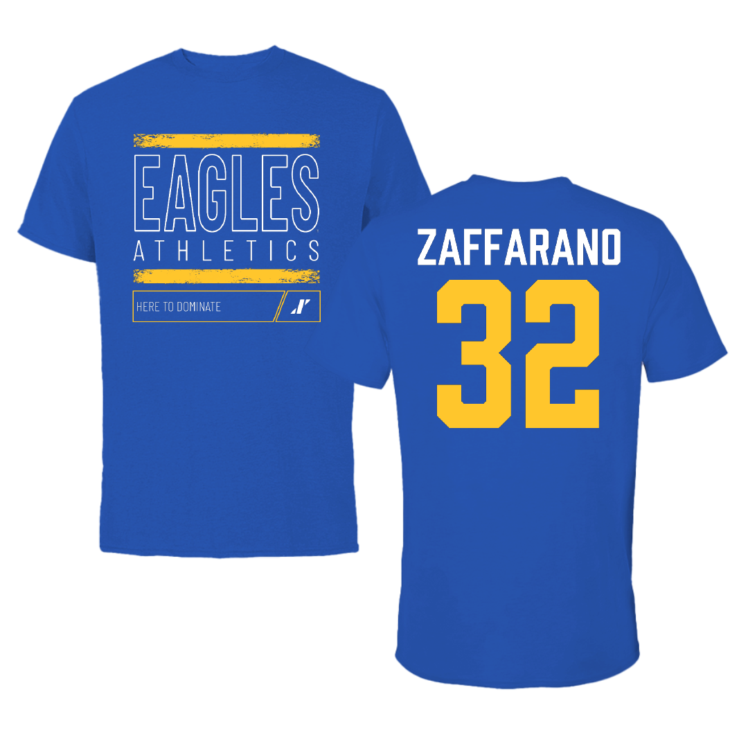 Williams Baptist University Baseball Blue Dominate Performance Tee - #32 Gaige Zaffarano