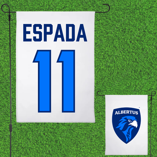 Albertus Magnus College Baseball White Garden Flag - #11 Adriel Espada