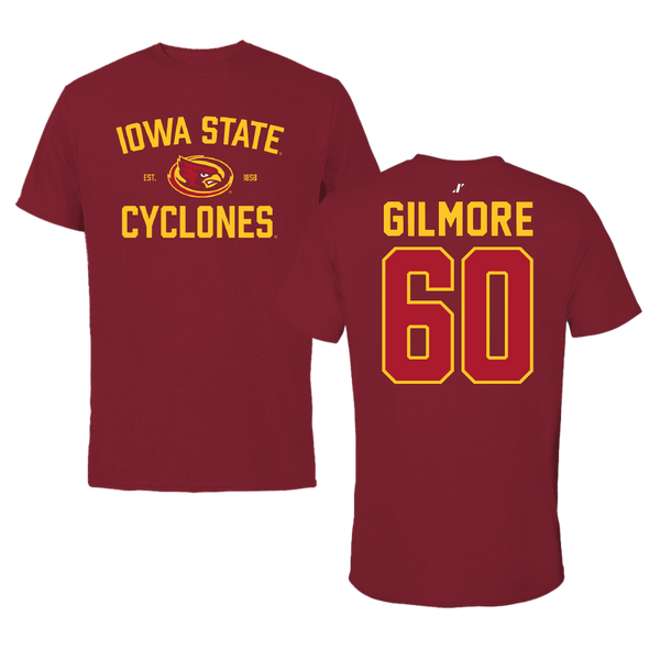 Iowa State University Football Cardinal Tee - #60 Aidan Gilmore