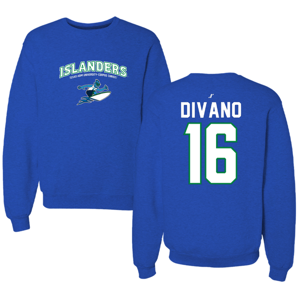Texas A&M University-Corpus Christi Soccer Blue Crewneck - #16 Ali Divano