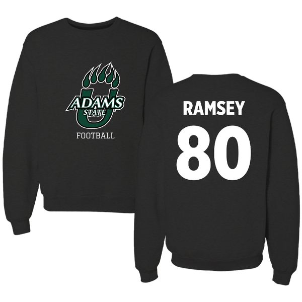 Adams State University Football Black State Crewneck - #80 Damarian Ramsey