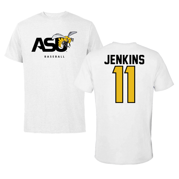 Alabama State University Baseball White ASU Performance Tee - #11 Niguel Jenkins