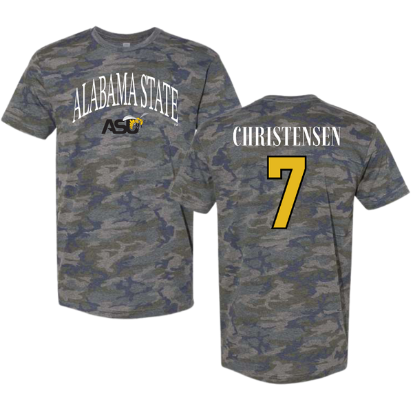 Alabama State University Baseball Vintage Camo Tee - #7 Jaxon Christensen