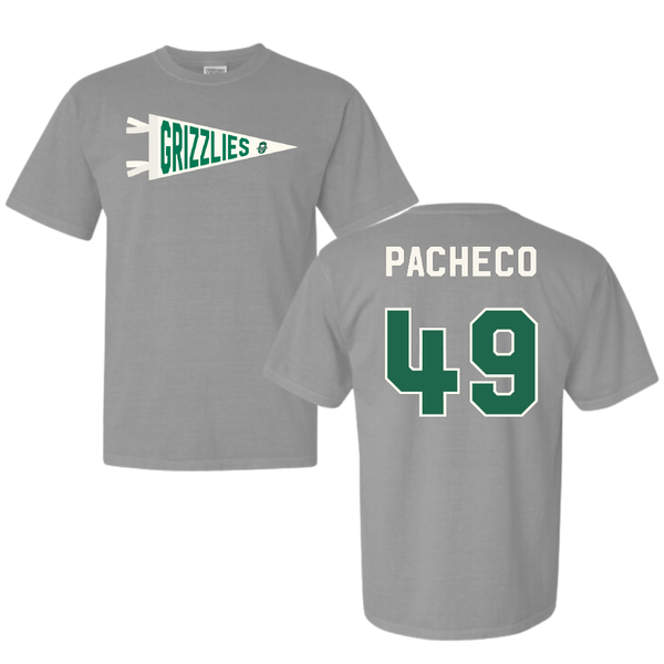 Adams State University Football Light Gray Pennant Comfort Colors Tee - #49 Quinton Pacheco
