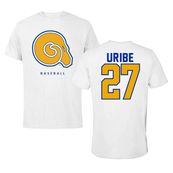 Albany State University Baseball White Tee - #27 Mylon Uribe