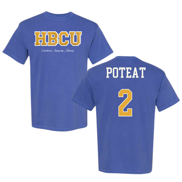 Albany State University Basketball (M) Blue HBCU Varsity Comfort Colors Tee - #2 Shakur Poteat