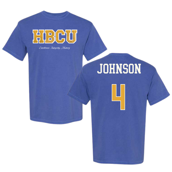 Albany State University Basketball (M) Blue HBCU Varsity Comfort Colors Tee - #4 Kj Johnson
