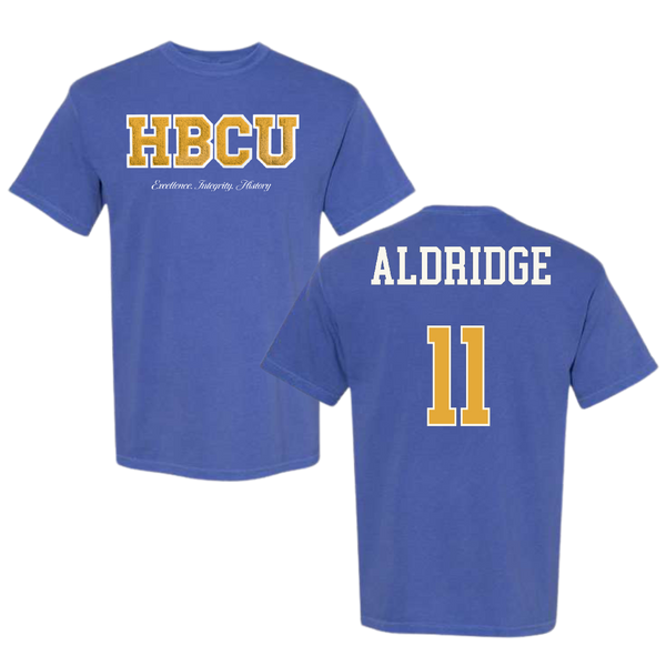 Albany State University Basketball (M) Blue HBCU Varsity Comfort Colors Tee - #11 Gshan Aldridge