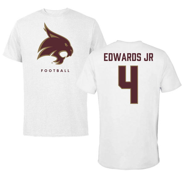 Texas State University Football White Performance Tee - #4 Alonzo Edwards Jr