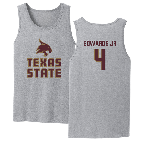 Texas State University Football Sport Gray Tank Top - #4 Alonzo Edwards Jr