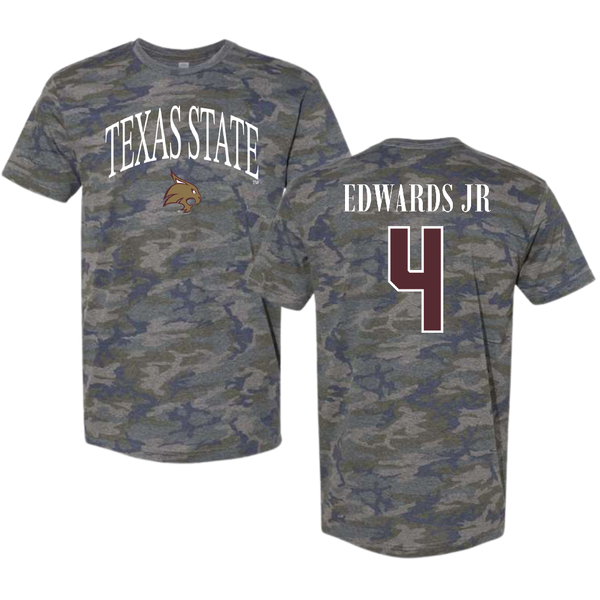 Texas State University Football Vintage Camo Tee - #4 Alonzo Edwards Jr