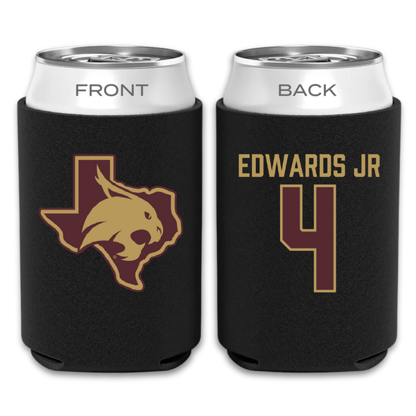 Texas State University Football Black Can Cooler - #4 Alonzo Edwards Jr