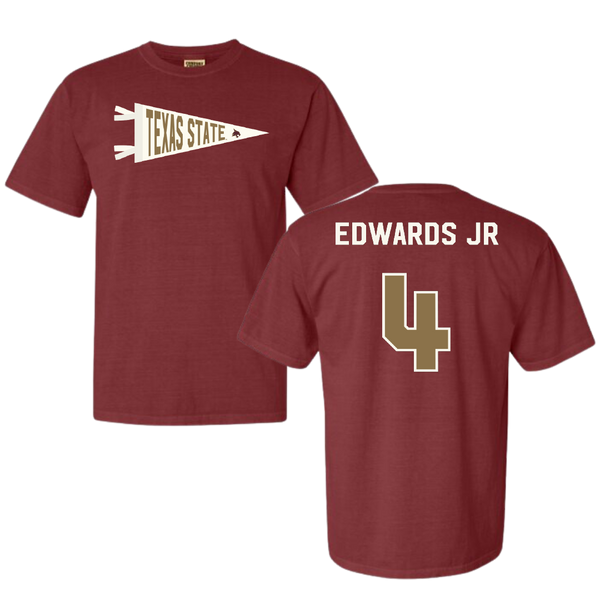 Texas State University Football Maroon Pennant Comfort Colors Tee - #4 Alonzo Edwards Jr
