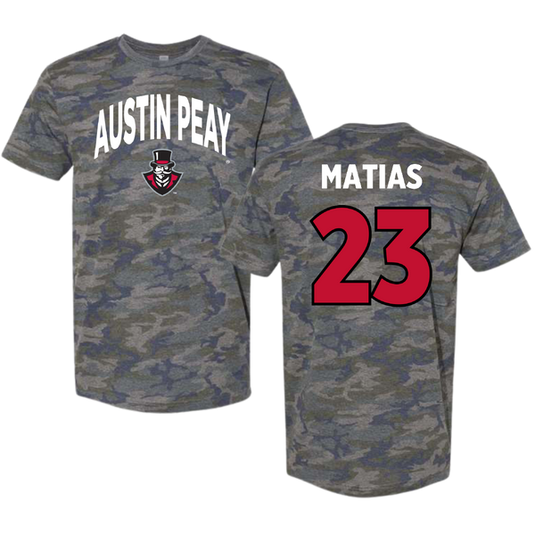 Austin Peay State University Baseball Vintage Camo Tee - #23 Andres Matias