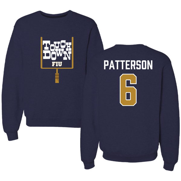 Florida International University Football Navy Touchdown Crewneck - #6 Antonio Patterson