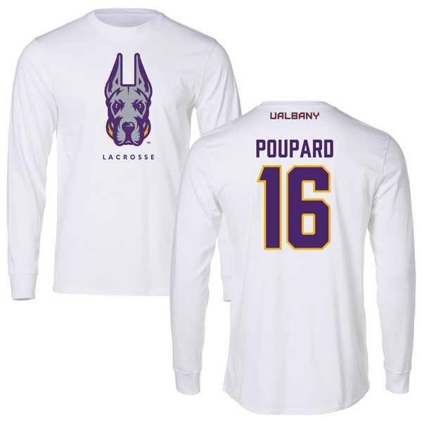 University at Albany Lacrosse White Long Sleeve - #16 Ava Poupard