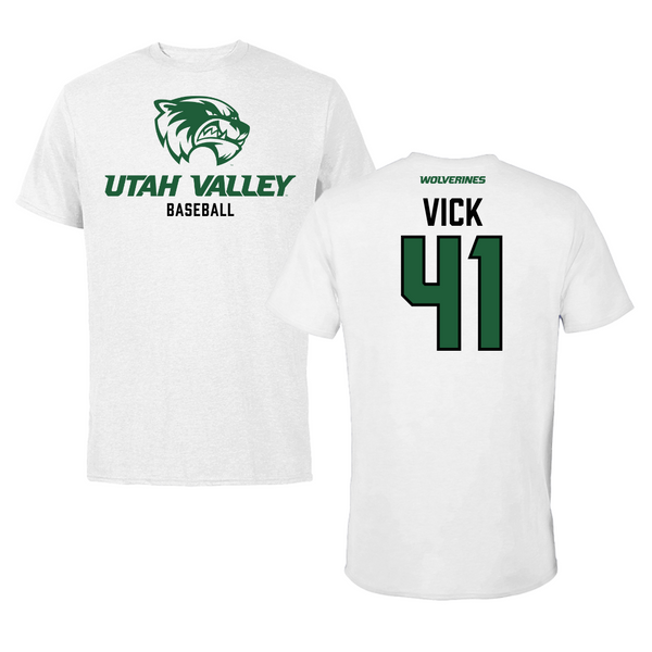 Utah Valley University Baseball White Performance Tee - #41 Braxton Vick