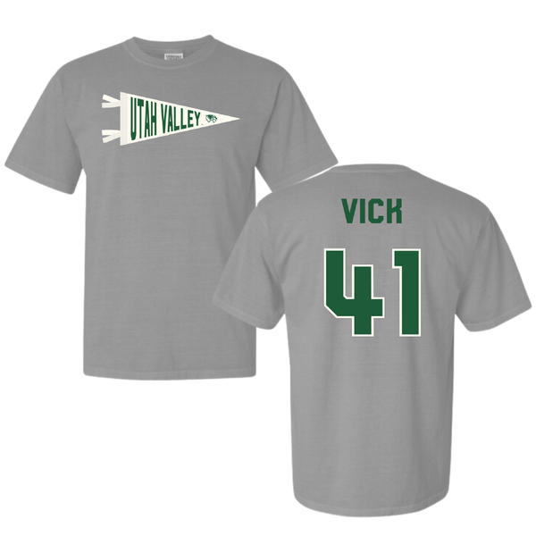 Utah Valley University Baseball Light Gray Pennant Comfort Colors Tee - #41 Braxton Vick