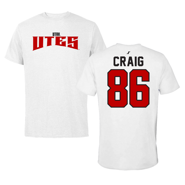 University of Utah Football White Classic Tee - #86 Brigden Craig