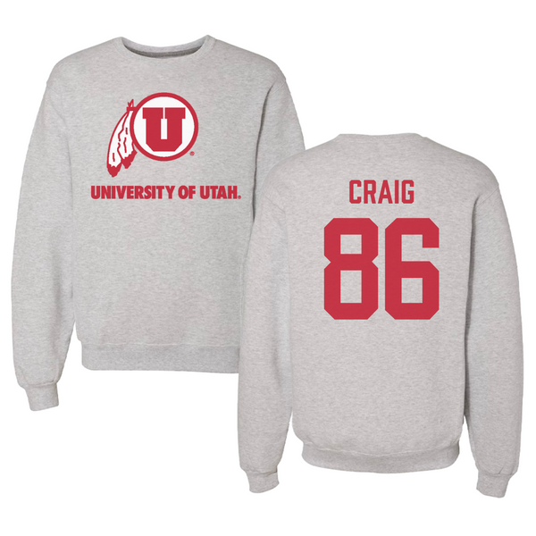 University of Utah Football Gray Crewneck - #86 Brigden Craig