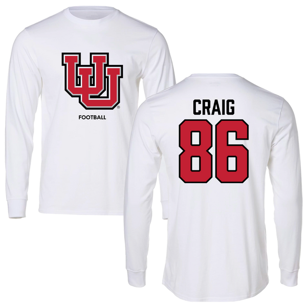 University of Utah Football White Block Long Sleeve - #86 Brigden Craig