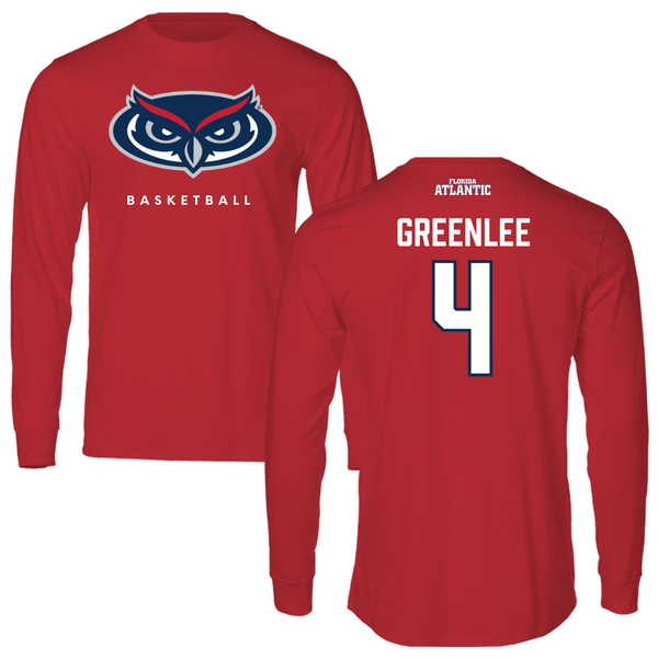 Florida Atlantic University Basketball Red Long Sleeve - #4 Bryan Greenlee