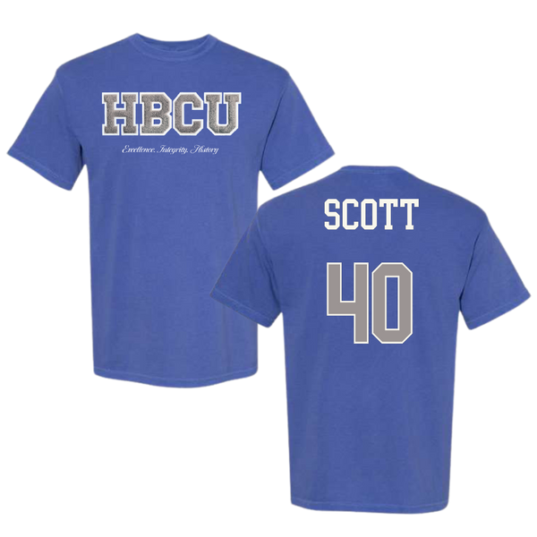 Voorhees University Baseball Blue HBCU Varsity Comfort Colors Tee - #40 Calvin Scott