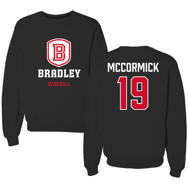 Bradley University Baseball Black Crewneck - #19 Colin McCormick