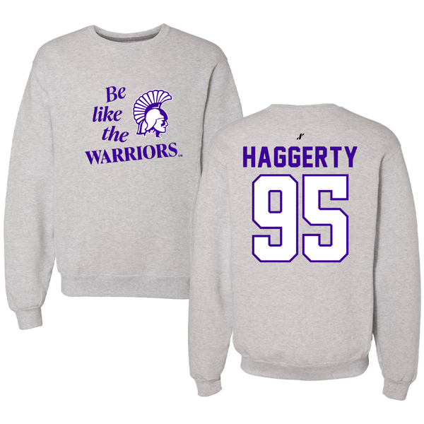 Winona State University Football Light Gray Be Like Us Crewneck - #95 Conner Haggerty
