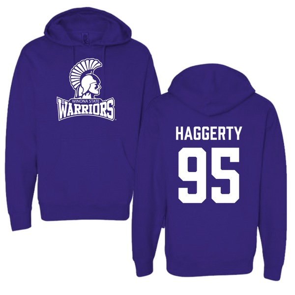 Winona State University Football Purple General Hoodie - #95 Conner Haggerty