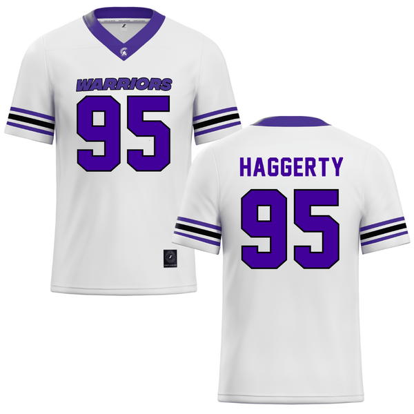 Winona State University White Football Jersey - #95 Conner Haggerty