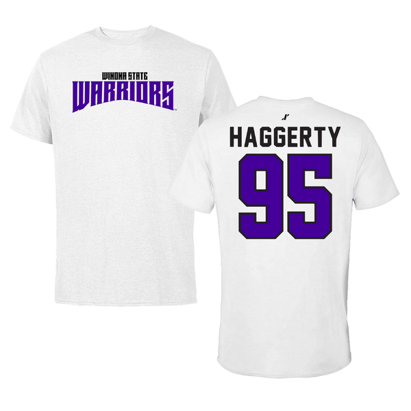 Winona State University Football White Classic Tee - #95 Conner Haggerty