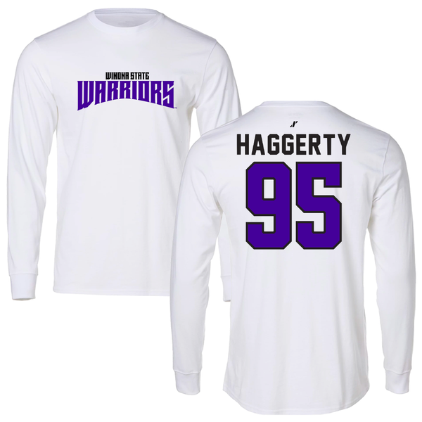 Winona State University Football White Classic Long Sleeve - #95 Conner Haggerty