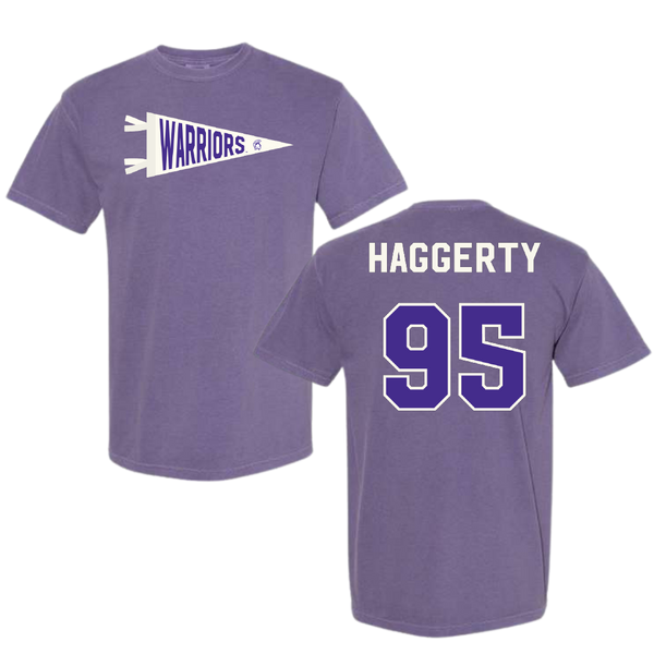 Winona State University Football Purple Pennant Comfort Colors Tee - #95 Conner Haggerty