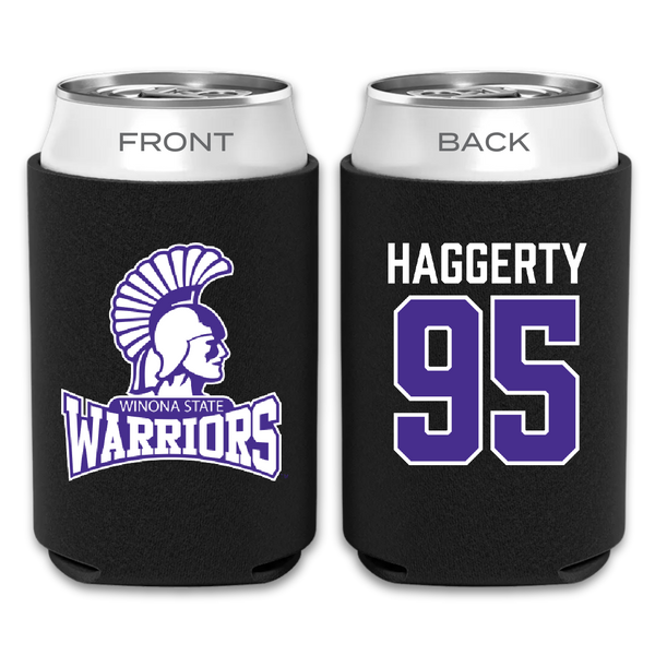 Winona State University Football Black Can Cooler - #95 Conner Haggerty