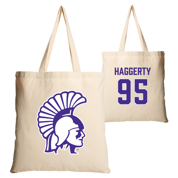 Winona State University Football Tan Canvas Tote Bag - #95 Conner Haggerty