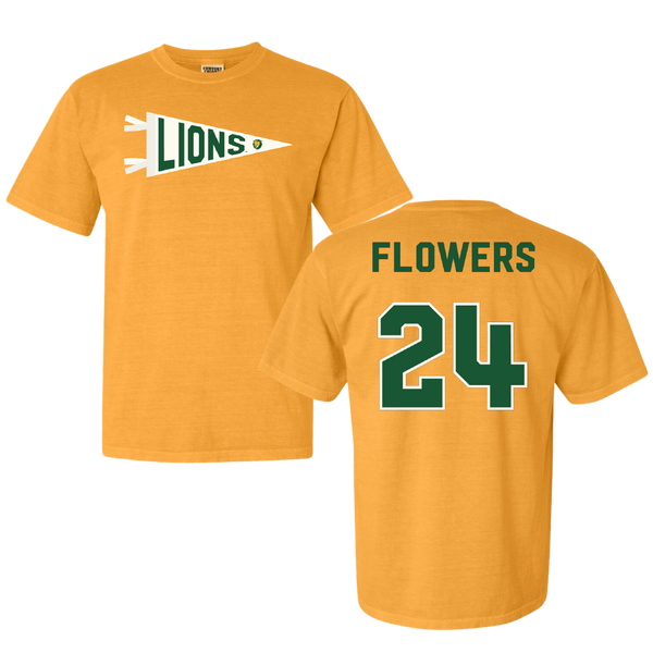 Southeastern Louisiana University Basketball Gold Pennant Comfort Colors Tee - #24 Dijone' Flowers