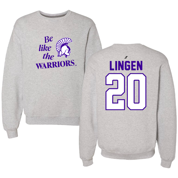 Winona State University Baseball Light Gray Be Like Us Crewneck - #20 Drew Lingen