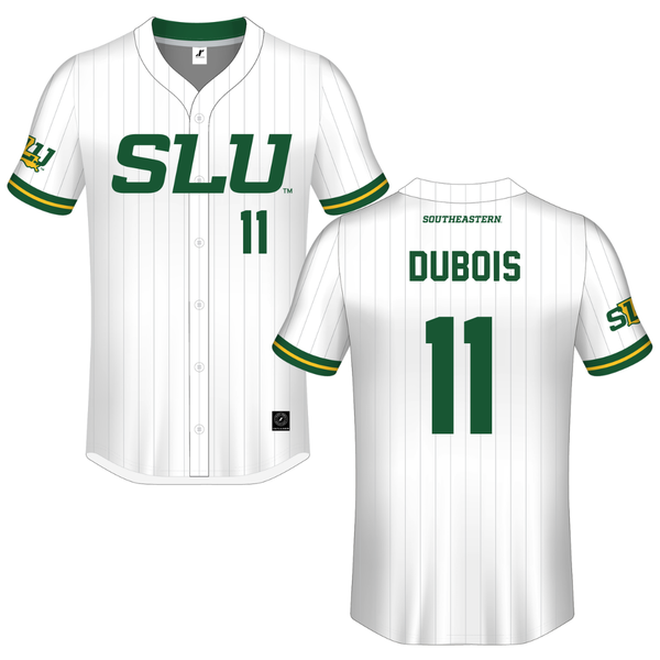 Southeastern Louisiana University White Pinstripe Button-Down Jersey - #11 Ellie DuBois