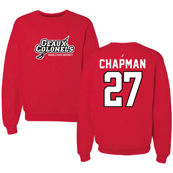 Nicholls State University Football Red Touchdown Crewneck - #27 Gil Chapman