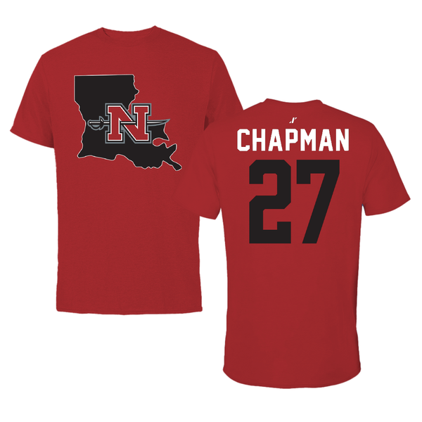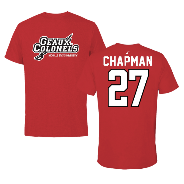 Nicholls State University Football Red Tee - #27 Gil Chapman