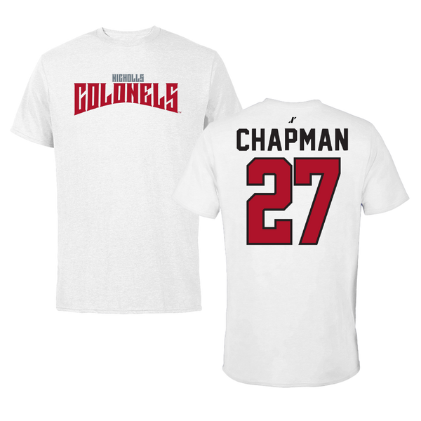 Nicholls State University Football White Tee - #27 Gil Chapman