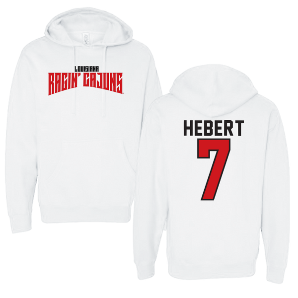 University of Louisiana at Lafayette Baseball White Classic Hoodie - #7 Griffin Hebert