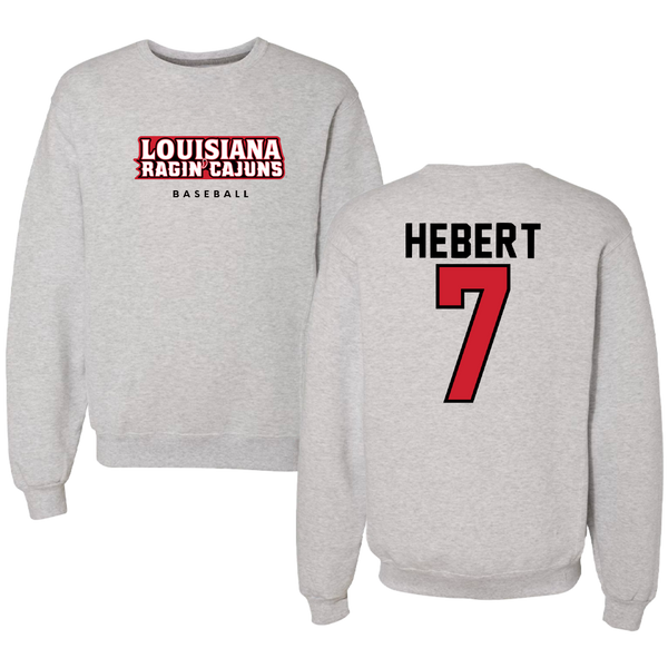 University of Louisiana at Lafayette Baseball Gray Crewneck - #7 Griffin Hebert
