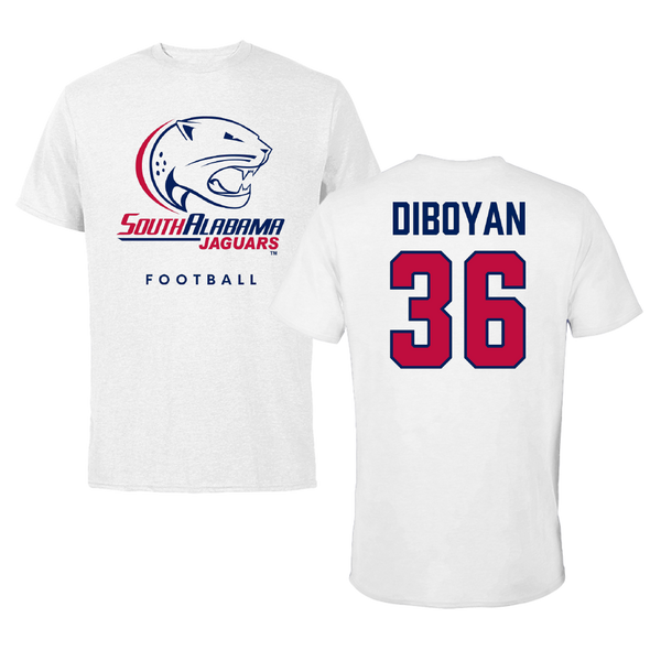 University of South Alabama Football White Tee - #36 Hamilton DiBoyan