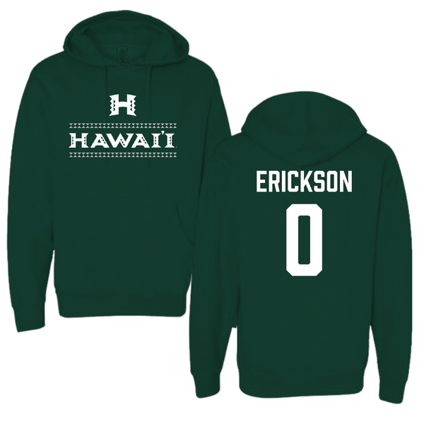 University of Hawaii Basketball (M) Forest Green Hoodie - #0 Hunter Erickson