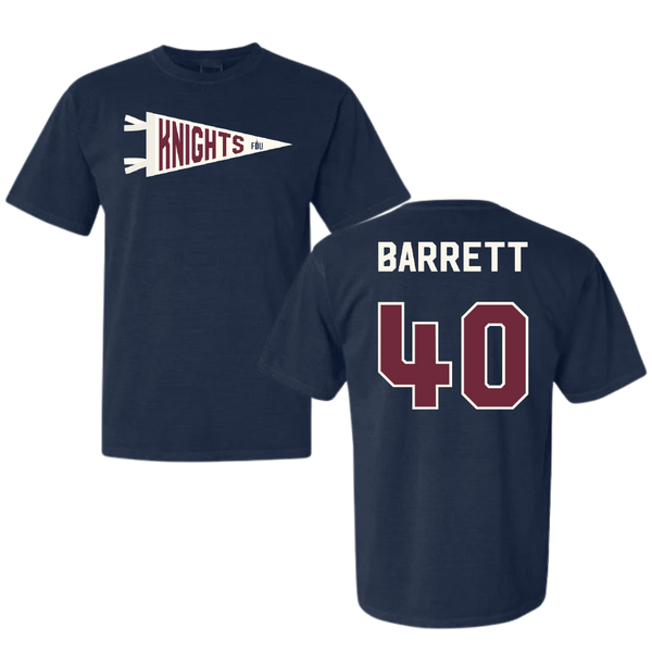 Fairleigh Dickinson University-Metropolitan Campus Baseball Navy Pennant Comfort Colors Tee - #40 Ian Barrett