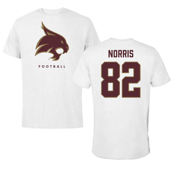 Texas State University Football White Tee - #82 Isaac Norris