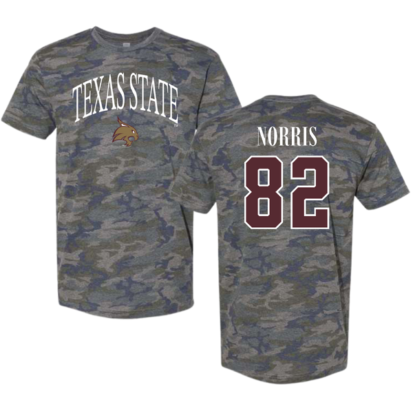 Texas State University Football Vintage Camo Tee - #82 Isaac Norris