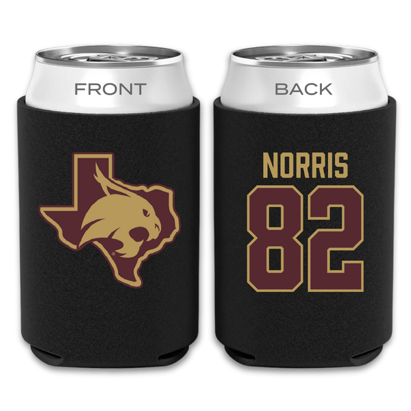 Texas State University Football Black Can Cooler - #82 Isaac Norris